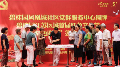 为积极响应党的十九大号召,打造共享共建共治的社会治理格局,加强社区治理体系建设,2018年6月27日下午,碧桂园江苏区域党委在碧桂园欢乐城举行凤凰城社区党群服务中心揭牌、碧桂园江苏区域首届红色文化节暨“红色联盟”签约仪式。