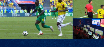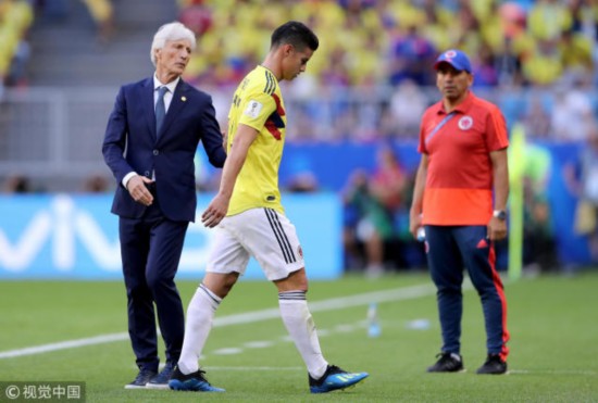 第18分钟,马内在反击中单刀突入禁区摔倒,裁判原本判罚了一个点球,但是在通过观看视频回防后做出了改判。全场哥伦比亚球迷,欢声雷动。不过在第31分钟,哥伦比亚头号球星J罗因为身体不适而被替换下场。