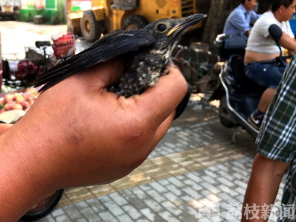 李先生称,今天早晨,他途经方家营的时候,听见两只乌鸫“叽叽喳喳”狂叫声,原是一只流浪小猫正在追赶一只雏乌鸫,考虑到乌鸫鸟儿,属于野生保护动物。所以,为了不让可怜的雏乌鸫沦落为小花猫的美食,他捡起几块石头将流浪猫砸跑,随即把雏乌鸫抱起,摆放在树上,一会儿,两只大乌鸫飞来将雏乌鸫带走。