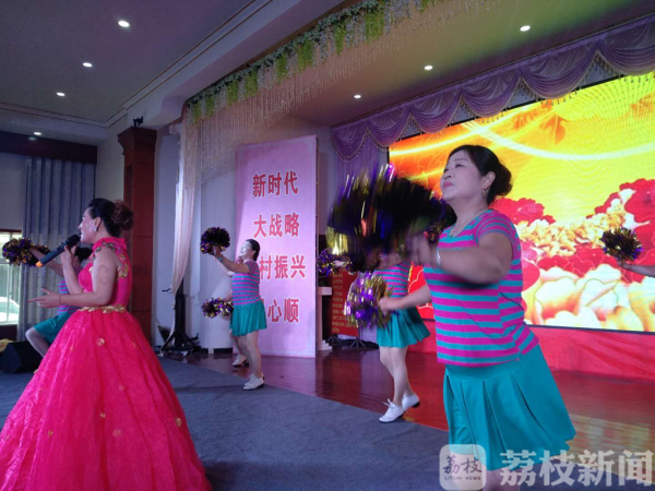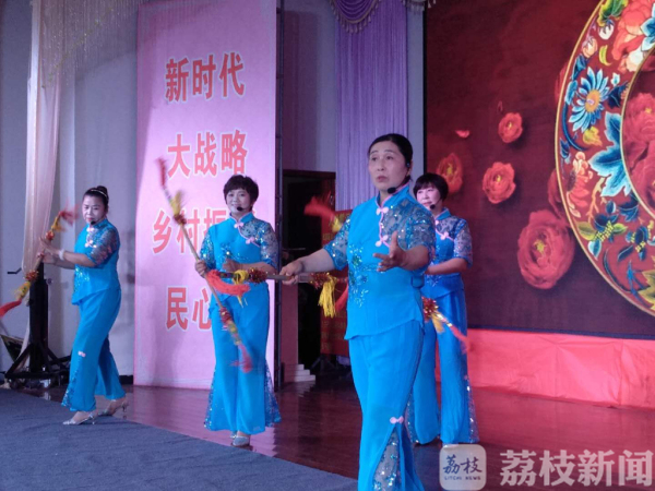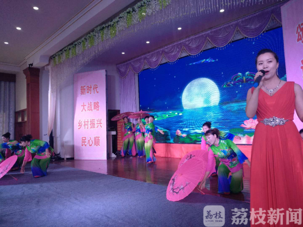 在文艺汇演开始前,党员代表来到镇党员党性实景教育基地进行参观,接受爱国主义教育,并在党旗下重温入党誓词。一首红歌诉说一段历史,一首红歌见证一段传奇,大家用嘹亮的歌喉、精美的舞姿,竞相歌唱伟大的中国共产党。文艺汇演在歌舞《中国火起来》的音乐声中拉开了序幕。《映山红》、《大海航行靠舵手》、《主席的话儿记心上》、《再唱山歌给党听》等一首首慷慨激昂、振奋人心的经典红歌,再配上精美的舞蹈,表达了广大乡村党员对党的崇敬和热爱,充分展示了如今村民的良好精神风貌,来自派出所的民警和联防队员演唱了一首《咱当兵的人》,赢得了在场观众的阵阵掌声。由农民快板队自行编排的音乐快板《撸起袖子加油干》,更是将现场的气氛推向了高潮,整台汇演在大家齐唱《没有共产党就没有新中国》的歌声中结束。