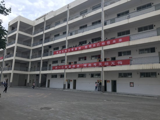 庆阳六中内的高考打气条幅。 澎湃新闻记者 于亚妮 图