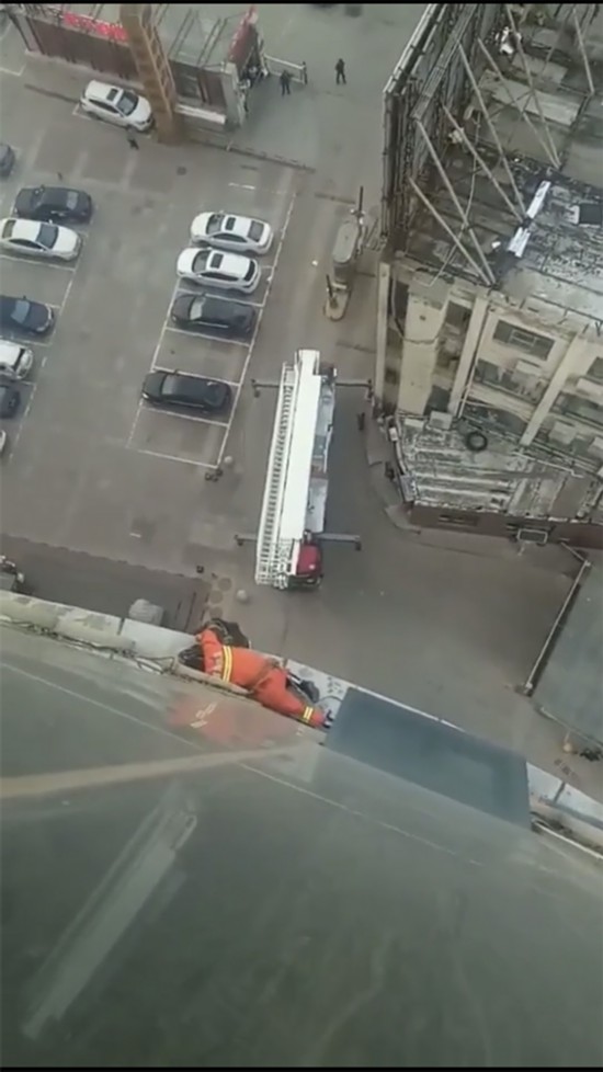 16时11分,增援的特勤中队54米登高平台车到达,许积伟试图通过登高平台车救援,但是只要一有升起动作,她就情绪非常激动,扬言要往下跳,先后尝试三次。