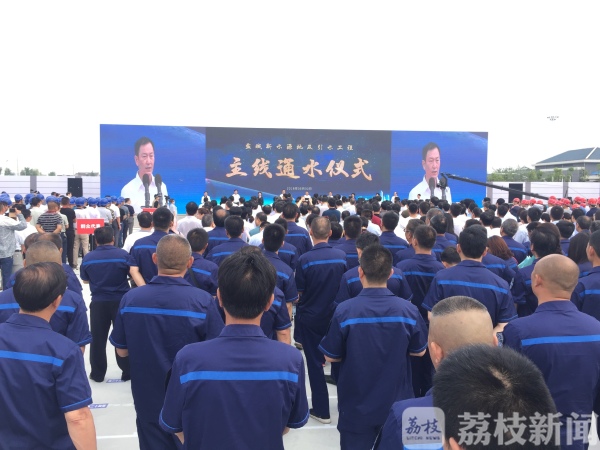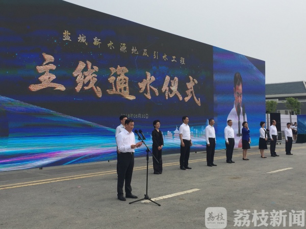 “问渠哪得清如许,为有源头宝应来。”这是书写在大运河畔氾水镇“盐城市新水源地取水口”的红底白字巨幅标语。6月30日上午,滚滚长江水从宝应经过长83公里、直径2.4米管道内的奔涌到达目的地盐城。在盐龙湖水厂,盐城市委书记戴源、市政协主席李驰等从水龙头下接过一杯长江水,一饮而尽,连声赞叹水的甘甜。至此,盐城新水源地引水主线正式通水,同时将通过130公里支线管道,将长江水输送到大丰区和建湖、射阳两县,总受益人口近500万。