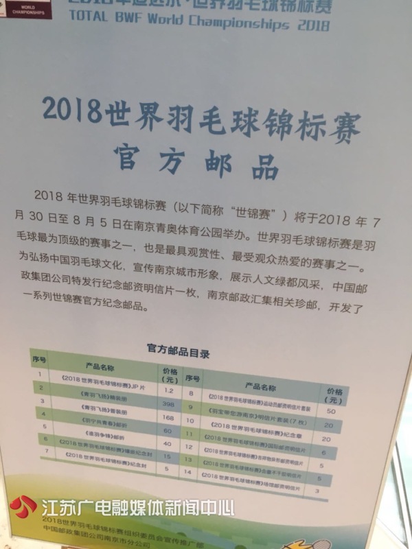 来自世界48个国家的340名世界顶尖运动员将齐聚南京,参加5个单项、一共251场比赛的角逐。在2018世界羽毛球锦标赛倒计时30天之际,南京也发布了一系列世锦赛的官方纪念邮品,观众可以在比赛场馆购买喜爱的明信片或者纪念章。