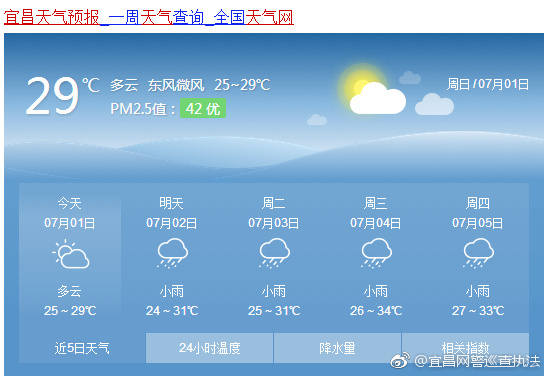 根据中国气象局发布的预报,未来宜昌的天气是这样的(见图3),大家出行请注意安全。