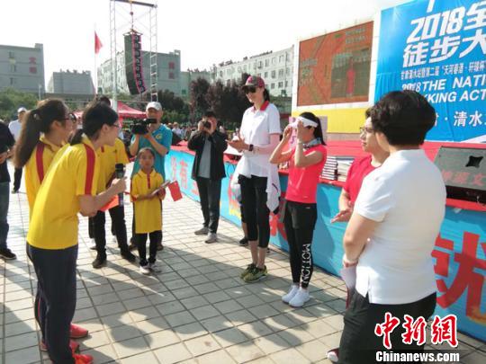 中新网兰州7月1日电 (杨娜)1日,2018年全国徒步大会甘肃清水站暨第二届“轩辕杯”全民健步走活动在甘肃省天水市清水县举行。奥运冠军赵蕊蕊、王丽萍、邹凯领读誓词并分队领走,倡导全民健身。