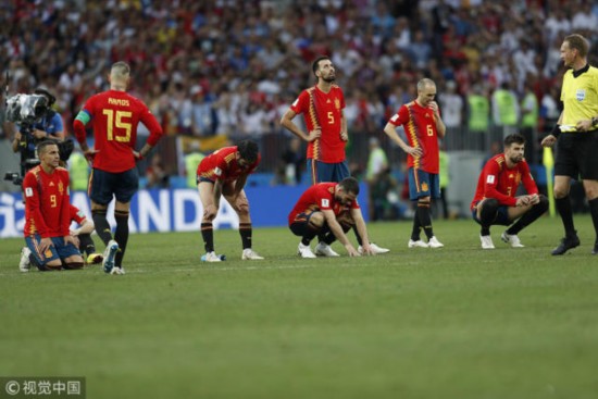 西班牙队从第一分钟就开始掌握控球权,但造成的实质威胁太小。开场的进球更多是依赖俄罗斯队的失误,即使如果那个球没有进,球队也会获得点球机会。