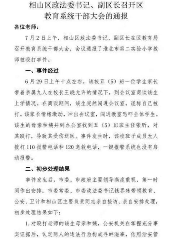 原标题:淮北一小学教师遭殴打,官员家长被纪委立案调查、校长被免职
