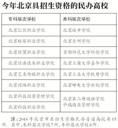 据市教委介绍,北京民办高校分为两类,一类是民办普通高校,可实施高等学历教育(研究生、本科、专科);另一类是民办非学历高等教育机构,实施非学历教育,不能实施高等学历教育。