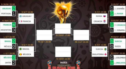 【2018俄罗斯世界杯八强对阵出炉:巴西法国迎强敌 英格兰上上签】