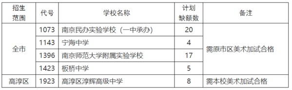 提前批次中,尚有部分招收美术特长生的普通高中未完成招生计划,具体信息如下: