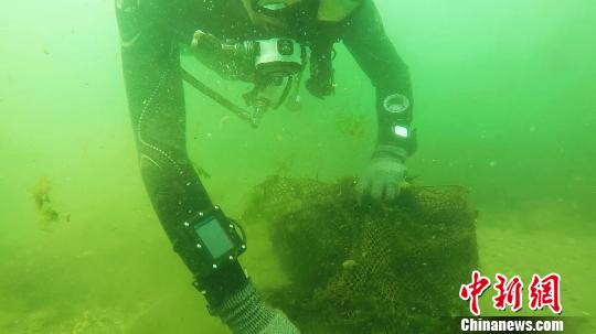 志愿者在秦皇岛近海海底打捞海洋垃圾 何志鹏 摄