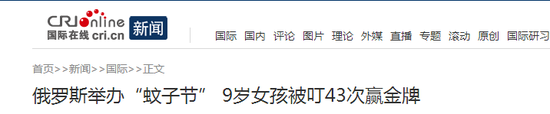 不过有趣的是,尽管蚊子满天飞,但有网友怀疑“战斗民族”似乎并不讨厌蚊子的存在。比如俄罗斯别列兹尼基市(Berezniki)的居民每年举办一届“蚊子节”,在2016年的“蚊子节”上,2016年9岁的女孩伊琳娜·伊留申(Irina Ilyukhina)被蚊子叮咬了总计43次,赢得“最美味女孩”大奖,伊琳娜还被奖励了一个陶瓷杯。
