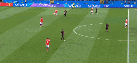 全场比赛,克罗地亚18次攻门3次射正,俄罗斯13次攻门5次射正,双方各入两球。克罗地亚的控球率达到65%,俄罗斯只有35%。