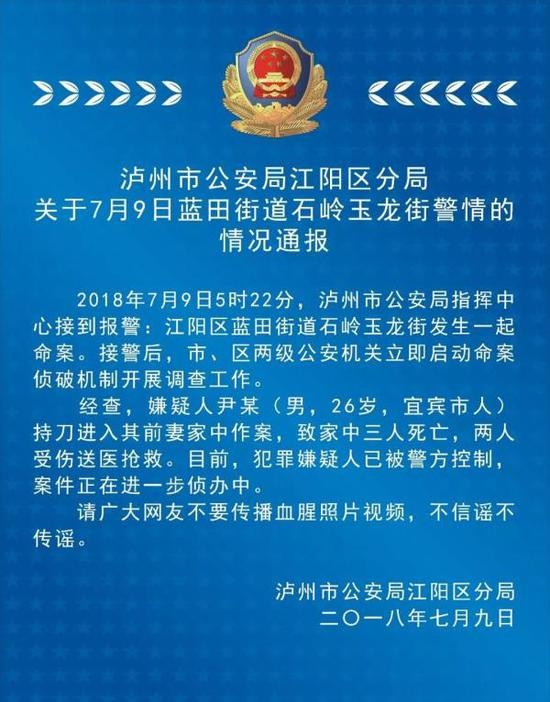 原标题:泸州市公安局江阳区分局关于7月9日蓝田街道石岭玉龙街警情的情况通报