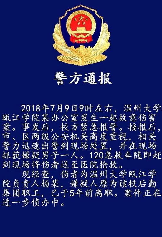 原标题:[突发]温州大学瓯江学院院长遇袭受伤,嫌疑人是学校后勤职工,5年前离职
