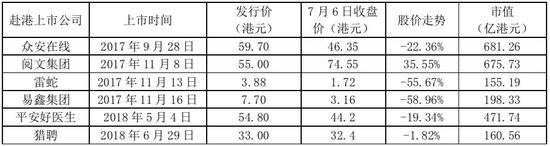 5月上市的平安好医生,作为2018年在香港上市的第一只科技独角兽,上市不久便跌破发行价。上市后最高价达到58.7港元(约合49.6元),一度跌至不到43港元(约合36元),7月6日报收44.2港元(约合37.3元)。