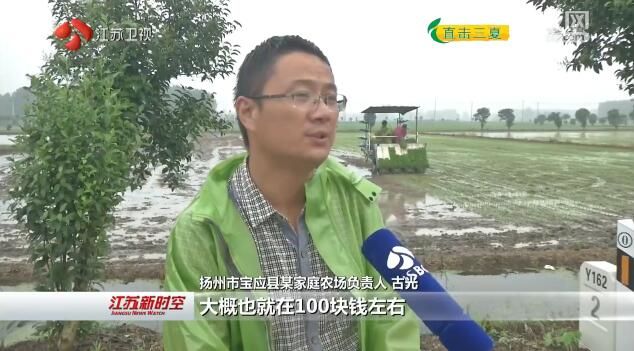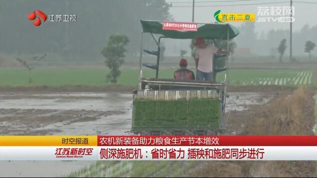 江苏台记者郝朦:“我现在是在扬州宝应县的黄塍镇,阴雨天插秧有利于秧苗及时返青,为了抢抓农时,当地的种粮大户调动了这样的侧深施肥机。在插秧的同时进行施肥,两步并成一步走,极大的节约了人力和时间成本。”