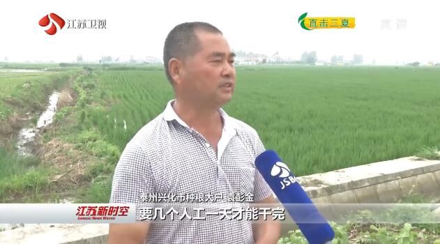 泰州兴化市种粮大户袁彭金:“这块地有140亩,要3到4个人。这个无人机,我只要一个半小时就能解决问题了。”