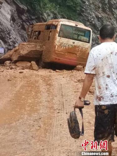 7月8日至7月9日,广元市再一次迎来强降雨天气过程。9日上午11时40分左右,一辆乘坐20余人的客车在途经旺苍县双汇镇至国华镇麻柳沟路段时,突遇山体滑坡。一块巨石砸中车头部分,导致车辆方向失控,被推至悬崖边,情况十分危急。