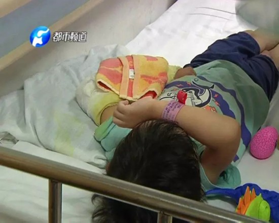 都市频道记者在医院见到了乐乐,躺在病床上,不哭不闹。