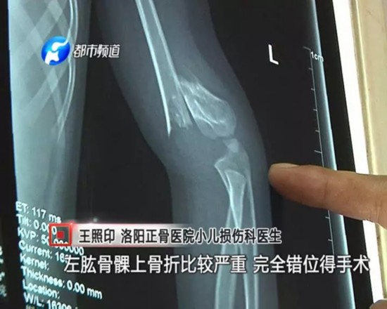 乐乐左胳膊严重骨折,在老家平顶山两次转院,最终连夜来到河南省洛阳正骨医院接受手术。