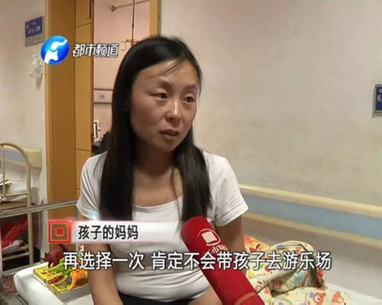 看见儿子摔伤,王女士又气又急,王女士问是谁家孩子,没人答应,结果孩子家长抱着孩子就走了。