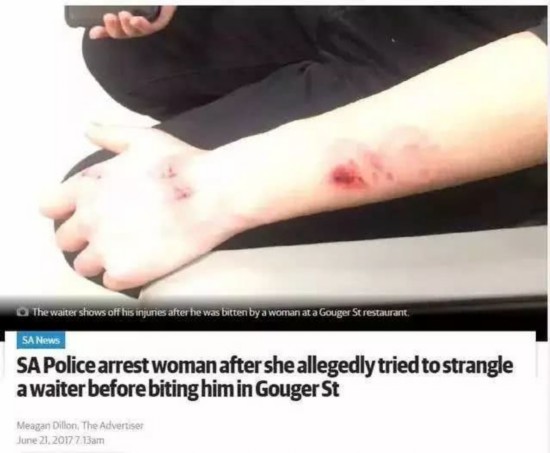 2017年6月,一位大妈在澳洲餐厅想吃霸王餐!遭拒后反而把服务员抓得遍体鳞伤……