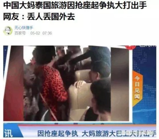 2018年5月,一则有关中国大妈在泰国因为争抢旅游大巴座位大打出手的新闻再次引爆舆论。