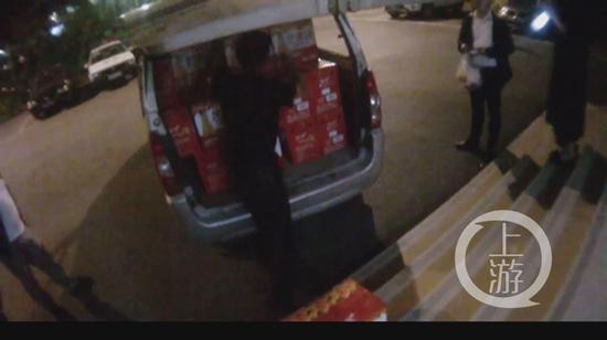 那天负责搬货的工人对民警说,两边的老板都不来,就说了个车牌号,我又没记住。当时在停车位看见一辆面包车跟老板说的一样,而且也没有锁尾箱,于是自己便把芒果汁搬上去了。