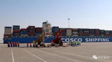 2017年11月5日,在阿拉伯联合酋长国阿布扎比,中远海运港口有限公司举行中远海运港口阿布扎比码头正式动工暨场站租赁签约仪式,标志着中国和阿联酋“一带一路”项目建设取得新进展。新华社记者苏小坡摄