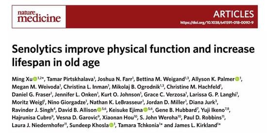 “这些细胞的作用不成比例,”本研究的通讯作者之一,来自知名的梅奥诊所的James Kirkland博士说道:“它们会分泌毒素,将衰老传播给周围的细胞。”