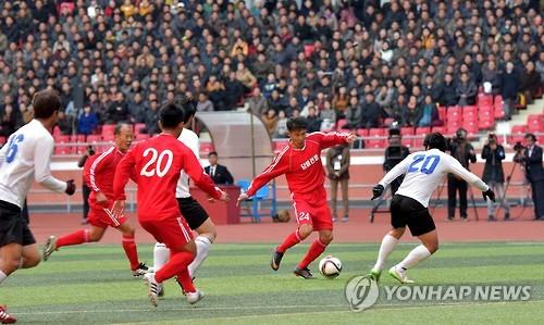 资料图:2015年10月,韩朝劳动者足球赛在平壤五一体育场举行。(图片来源:韩联社)