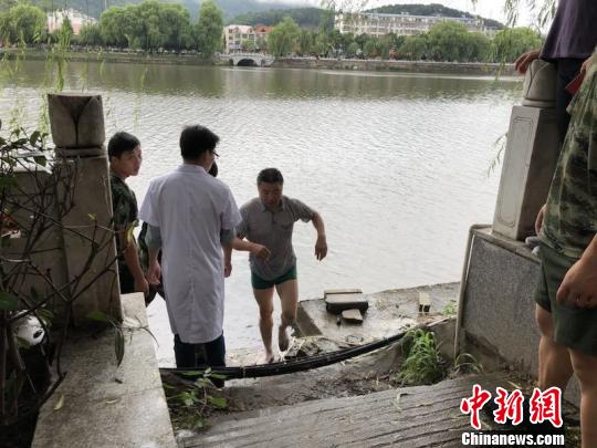 图为金诚老师救人后上岸离开。 陈玉梅 摄