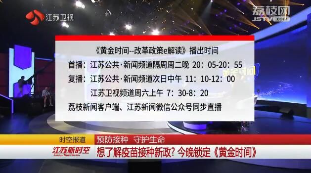 江苏首档大型政策解读电视节目《黄金时间——改革政策e解读》将于今晚20:05在江苏公共·新闻频道播出第三期,本期话题将聚焦"预防接种"相关政策。