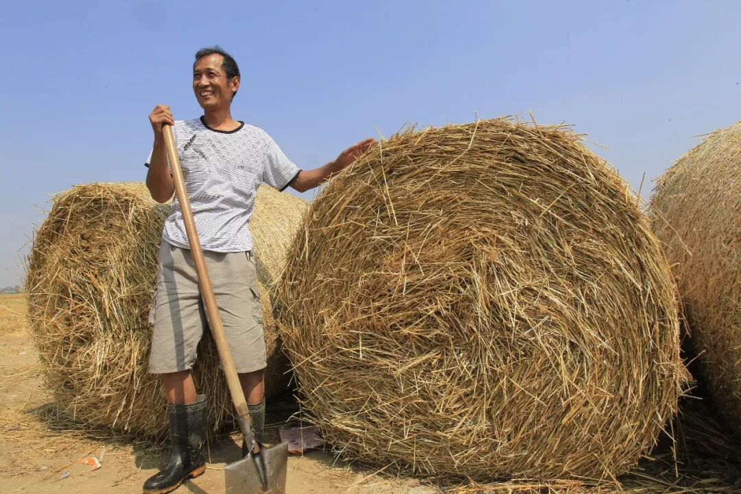 △河北石家庄,麦秸打成卷送往电厂再利用,保护生态环境的同时,增加了农民收入。