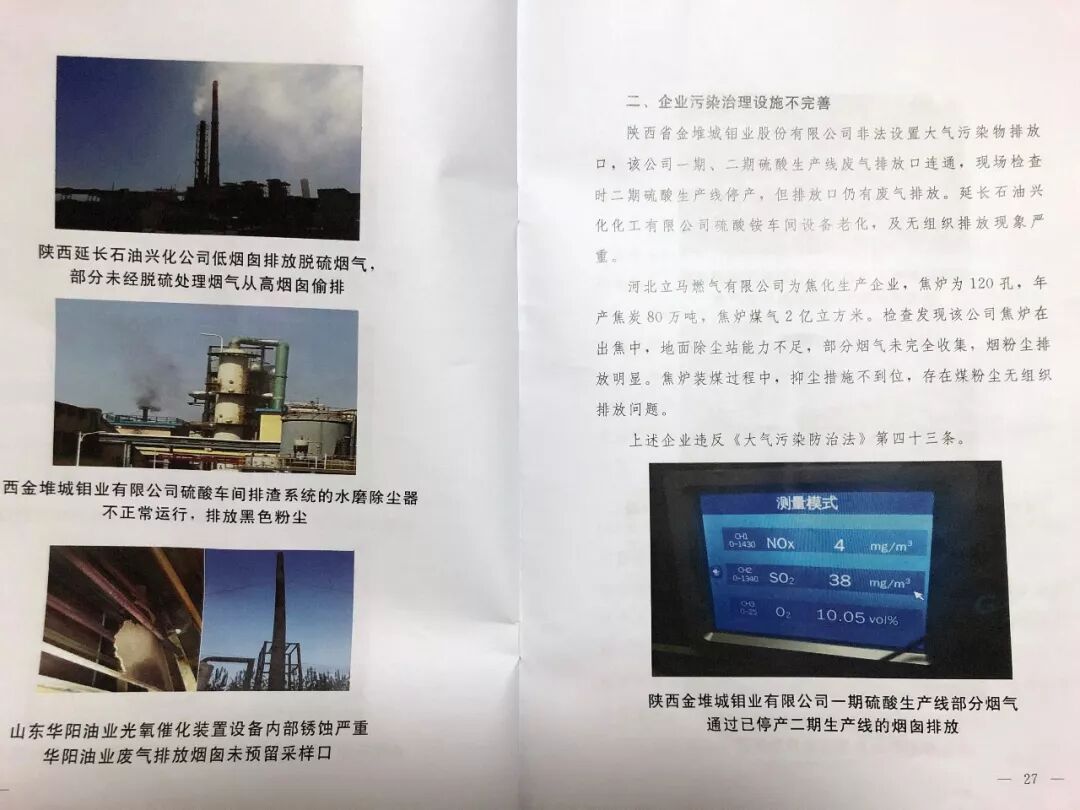 这份执法检查报告指出了多地环保的短板和劣迹,点名20多个企业和工地存在违反大气污染防治法的问题,并首次将污染企业的现场图印上全国人大常委会报告。