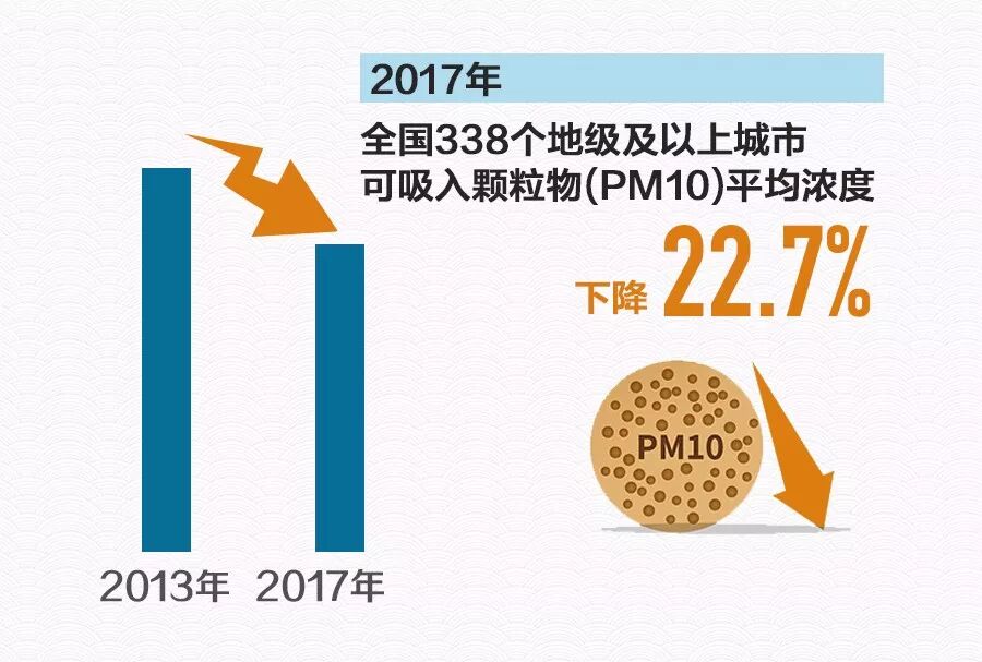 报告指出,2017年,全国338个地级及以上城市可吸入颗粒物(PM10)平均浓度比2013年下降22.7%;