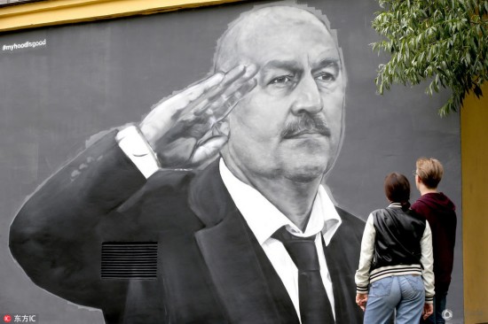 腾讯体育讯 俄罗斯当地时间7月10日,切尔切索夫巨幅壁画现身俄罗斯街头,行致敬礼栩栩如生,他带领俄罗斯男足杀进世界杯八强,创苏联解体后的最佳战绩。