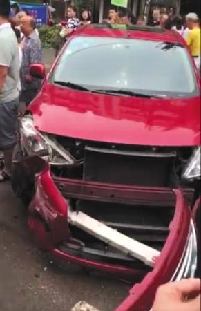从现场视频看,事发路段多处有“该通道为消防通道,门前禁止停车”的标志,一辆银色轿车被蹭开后车尾部有划痕和小幅度凹陷,一辆红色轿车车头已经被撞烂,路人纷纷拍照叫好。