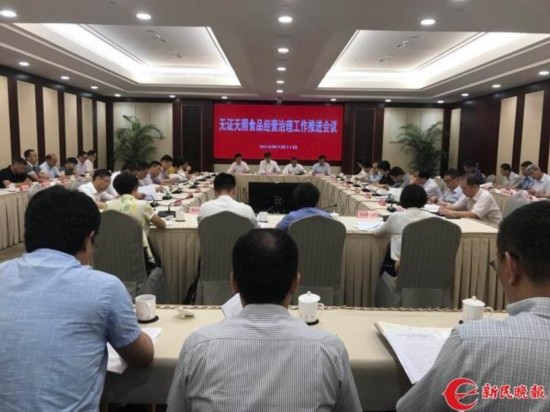 图说:市政府今召开2018年无证无照食品经营治理工作推进会议 新民晚报记者 裘颖琼 摄