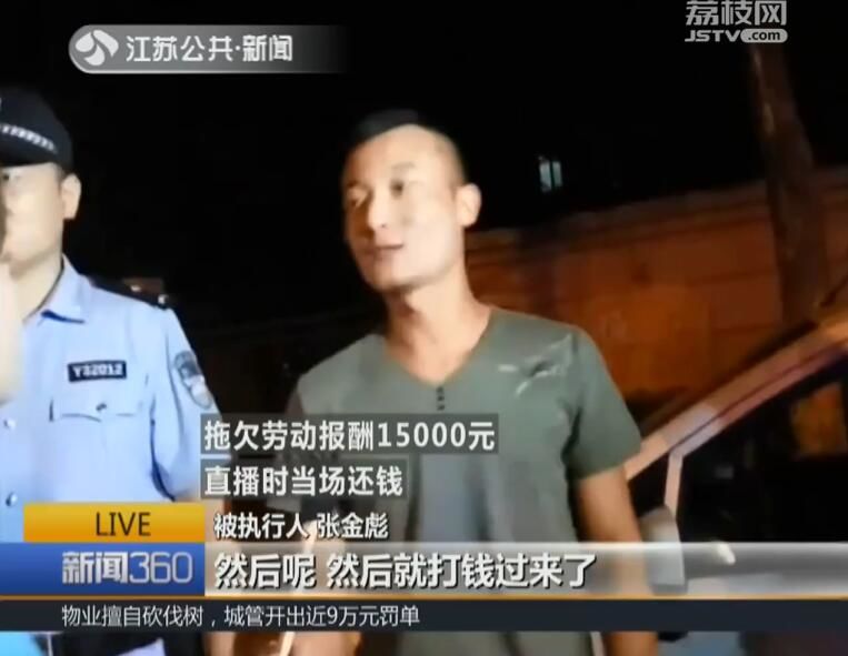 被执行人张金彪拖欠劳动报酬15000元近半年,直播时,他当场决定还钱。