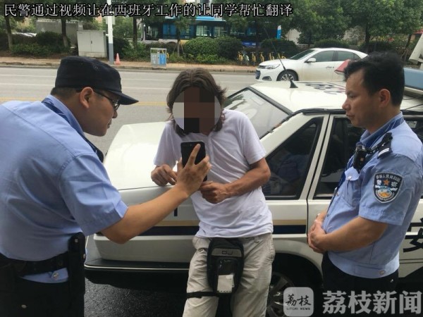 7月5号下午1点多, 南京雨花台公安分局的民警在行驶到名城大道附近时,被一名外籍男子拦了下来。但是男子除了简单的几个英文单词,说的语言大家都听不懂。民警示意男子出示护照,这才知道,他是西班牙人。张警官立即通过工作群询问,有没有懂西班牙语的同事。