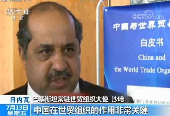 (日内瓦)巴基斯坦常驻世贸组织大使 沙哈:中国在世贸组织的作用非常关键,中国是多边体制强有力的支持者之一。