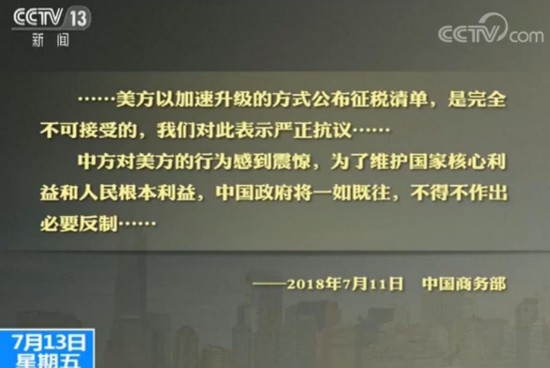 一周前的今天,这个被大家关注的很久的中美贸易战正式开打了,虽然第一笔开打的时候数额只有340亿美金,过去这一周的时间里面似乎有升级迹象,为什么呢?美国方面又说我要提出2000亿美金的清单,我们来看一下。美国公布的所谓“升级”的关税清单金额是2000亿美金,加征税率不再是第一笔的25%了,是10%了,项目6031项产品,再看产品内容很有意思,相当多的都是美国老百姓所需要的消费品了,衣物纺织品、玩具、冷冻和新鲜海产品、家电类、旅行用品类、汽车部件、家具农产品等等,现在还并没有到实施时间,是8月20到23号召开公听会,即便通过了实行征税的决定也将在8月31日之后做出,当然了中国方面立即会有反应,就像足球场一样,双方出动作的时候,只要一方先出腿就更容易受伤,那就必须都出。中方更是被动的,必须也有自己的举动,美方加速升级的方式公布征税清单是完全不可接受的,我们对此表示严正的抗议,中方对美方的行为感到震惊,为了维护国家核心利益和人民根本利益,中国政府将一如既往不得不作出必要反制,这是7月11号中国商务部的态度。接下来关注中美贸易战开打这一周。