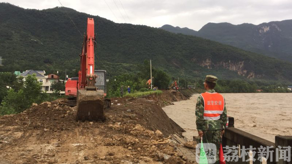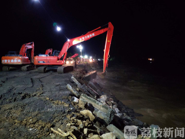 荔枝新闻讯(记者/江苏广电融媒体新闻中心 田柳 通讯员/黎学全 张从林)连日来,四川省绵阳市遭受连续强降雨袭击,导致境内水库、河流水位持续上涨,多区县发生内涝。江油市武都镇涪江河百鹤堤段,因洪水连续冲刷,近75米长堤坝发生垮塌,严重威胁下游群众生命财产安全。灾情发生后,武警某部交通第二支队迅速启动应急响应机制,携大型抢险装备奔赴灾害现场,展开抢险。