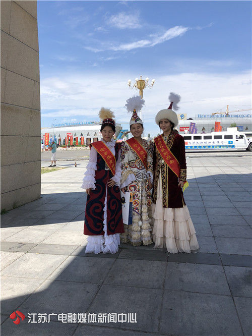 哈萨克斯坦女孩欢迎来自世界各地的朋友