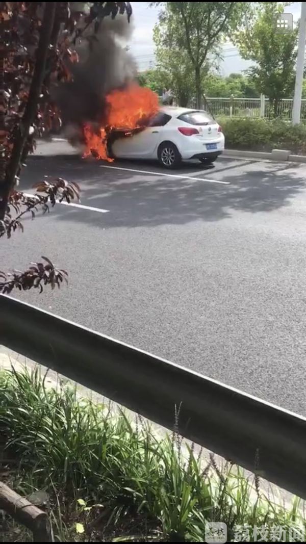 记者通过现场视频看到,一辆白色两厢轿车停在路边,车头部位燃烧猛烈,不时传来噼啪声。据先期赶到现场的泰州市公安局高港分局口岸派出所民警称,他们到达时,汽车前部已经开始燃烧起来,虽经扑救,但火势太大无法控制,消防队员赶到现场后,才将大火扑灭。