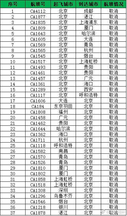 截止7月17日08:00,因天气影响,进出港航班取消情况如下: