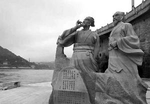 宜宾迎洪峰 苏轼黄庭坚雕塑被淹